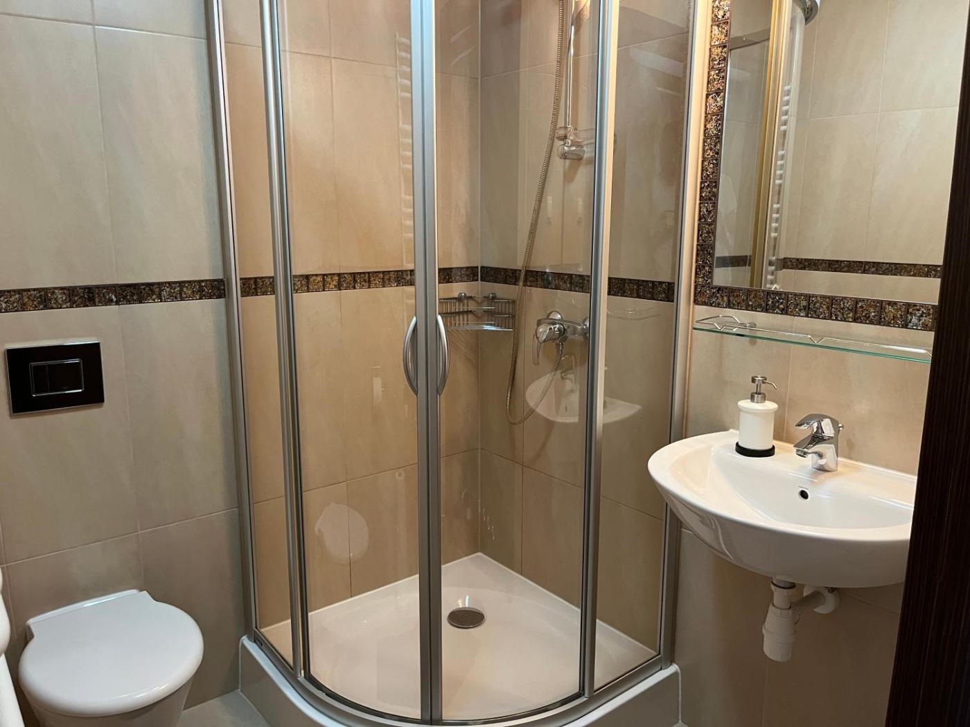 Pokój dwuosobowy z prywatną łazienką. The double room features soundproof walls, a tea and coffee maker, as well as a private bathroom boasting a shower and a hairdryer. The double rooms kitchen is available for cooking and storing food. This double room has a wardrobe, flat-screen TV, a quiet street view, as well as chocolate for guests. The unit has 1 bed. Powierzchnia pokoju ok.: 16 mkw.