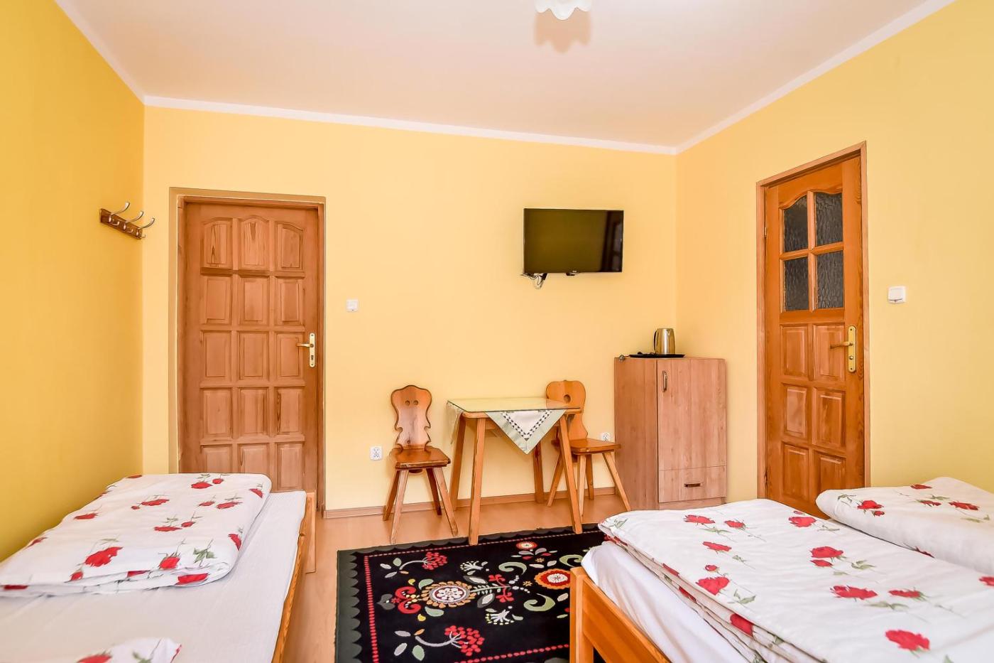 Pokój Dwuosobowy z widokiem na góry. Ten pokój dwuosobowy mieści część wypoczynkową oraz łazienkę z prysznicem. Dla Gości przygotowano zestaw do parzenia kawy i herbaty. Z balkonu roztacza się widok na góry. Pokój Dwuosobowy - 3 osobowy. Powierzchnia pokoju ok.: 10 mkw. ;
